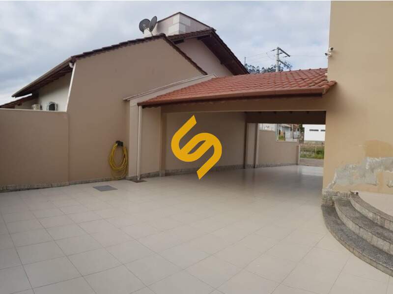 Garagem coberta para três carros.