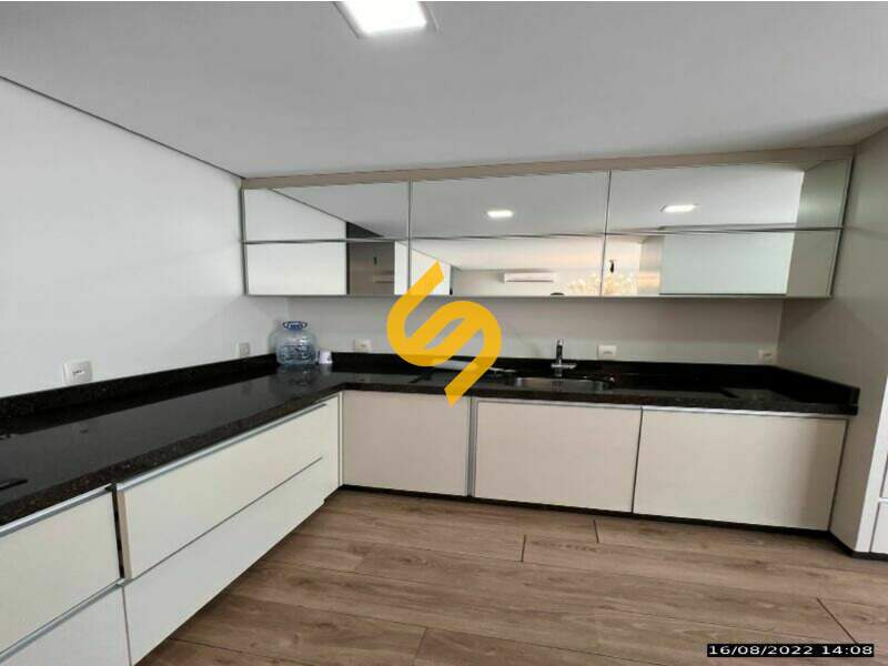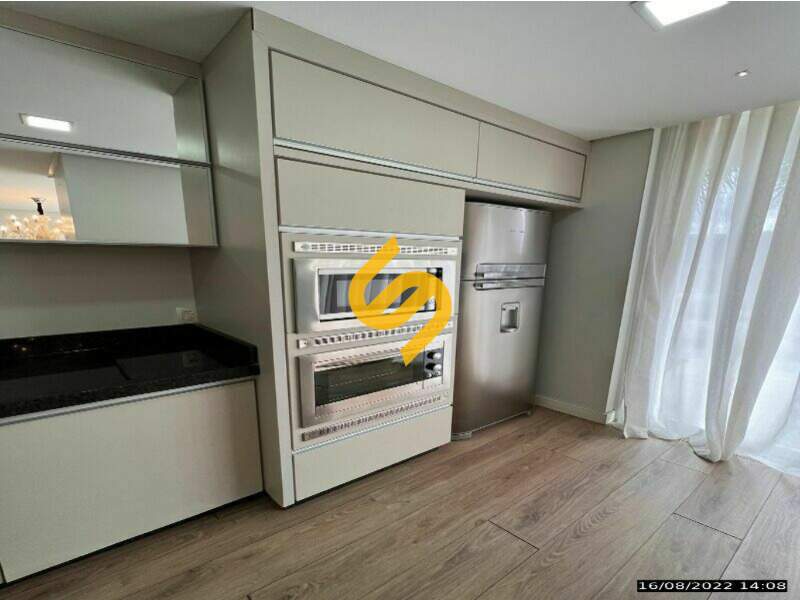 Sala e cozinha conjugadas, com churrasqueira integrada;